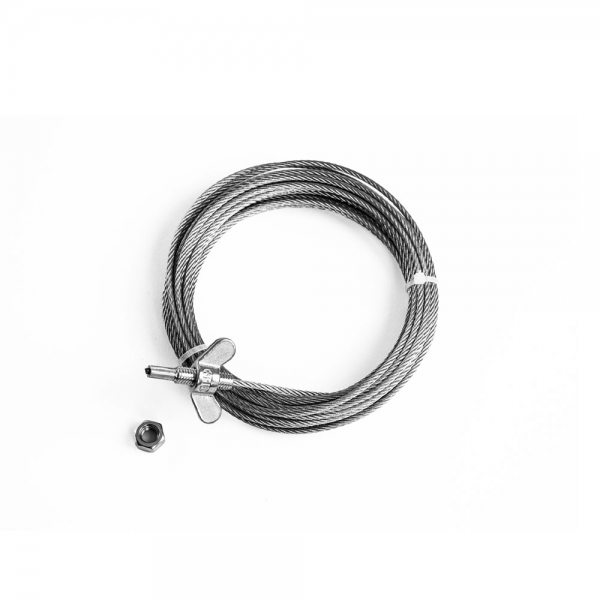 Deze staaldraden met een lengte van 6,5 meter zijn in combinatie met de nieuwe kabelspanners ook uitermate geschikt om de buitengordijnen van Shadow Comfort aan op te hangen. De staaldraden zijn voorzien van een persbus M8 en een vleugelmoertje in combinatie met een zeskantmoer om het doek vast te zetten.