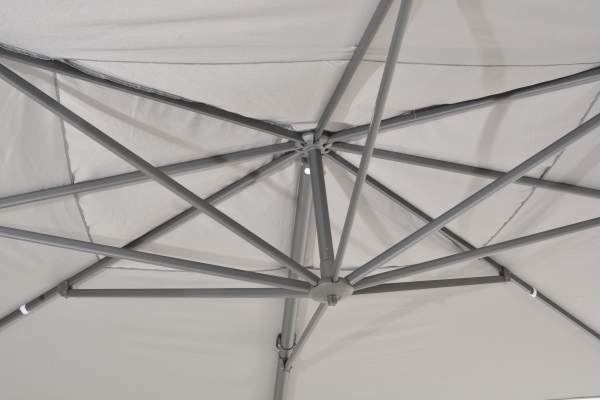 Parasol 4SO type Siesta Premium 300x300 cm., White frame, doek mid grey |