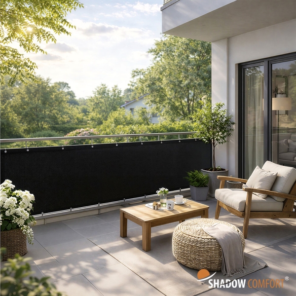 Het doek is geweven met diepe donkere antraciete draden in combinatie met een tint lichter antraciete draden. Doordat het een iets zwaardere kwaliteit doek is met een weefselgewicht van 300 gr/m2 en op een unieke manier geweven is, verschilt het aan beide zijden van kleur. De kleurstof Carbon Black is een veel toegevoegde pigment in kunststoffen en heeft van nature al een hogere slijtvastheid en is extra Ultravioletbestendig 1000Kly. Schaduwfactor 96,5%!