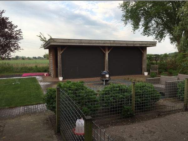 - Screen: Gladde en strakke uitstraling, gemaakt van polyester met een PVC-coating. De randen zijn niet afgewerkt maar netjes gesneden. Biedt goed zicht naar buiten, vooral bij donkere kleuren.