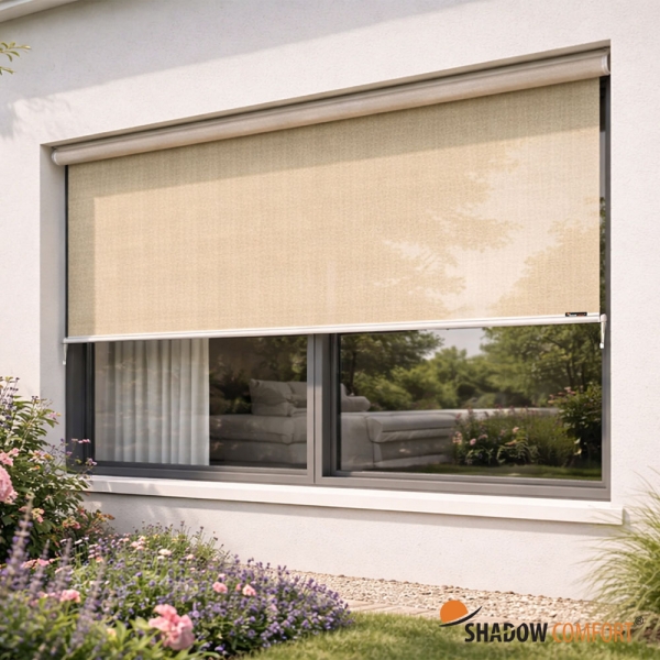 - Screen: Gladde en strakke uitstraling, gemaakt van polyester met een PVC-coating. De randen zijn niet afgewerkt maar netjes gesneden. Biedt goed zicht naar buiten, vooral bij donkere kleuren.