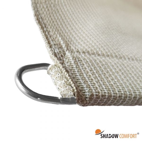 Een zeer populaire kleur is de kleur Sahara Sand, een licht naturel/zandkleurige tint geweven in combinatie met een creme kleurige draad. Deze sfeervolle kleur kan goed gecombineerd worden met vele andere tinten. Door de speciale weving van tapefilament draden is dit doek ook iets zichtdichter. Het doek heeft een gewicht van 250 gr/m2, windreductie van 90% en een schaduwpercentage van maar liefst 86%. UV stabilisatie 1000Kly.