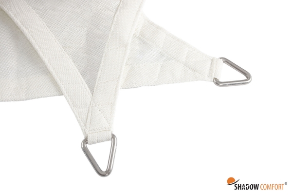 • Onze schaduwdoeken zijn voorzien van Triangel ringen en geen D-ringen die kwalitatief minder en goedkoper zijn. Deze stevige, driehoekige ringen zorgen voor een optimale krachtverdeling en maken een strakke, duurzame ophanging mogelijk.