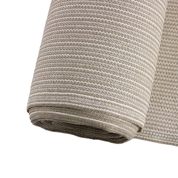 Het doek uit de Comfort serie van Shadow Comfort is geweven met zand- en creme kleurige draden waarmee je een zachte uitstraling met een aaibaar effect creëert. Dit HDPE geweven doek van 280 gr/m2 met tape- en monofilment draden heeft een schaduwpercentage van 77,5% en windreductie van 90%. UV stabilisatie 900Kly.