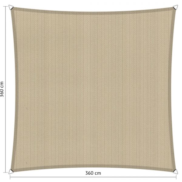 Een schaduwdoek vierkant 360x360 biedt een ideale balans tussen formaat en functionaliteit voor middelgrote buitenruimtes. Het ademende HDPE-materiaal laat lucht en regenwater door en voorkomt schimmelvorming. Dankzij de RVS ogen is het doek makkelijk en stabiel te bevestigen. Let er wel op dat schaduwdoeken een curve hebben, zodat het doek goed opgespannen kan worden.