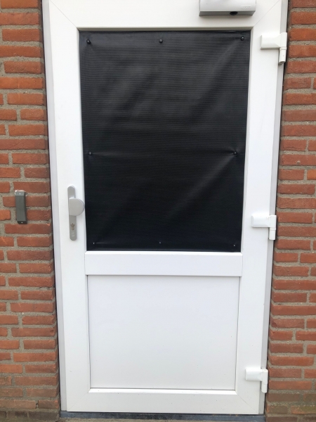 Stap 7: bevestig het zonweringsdoek aan de buitenzijde. Foto 1 is doorkijk vanuit binnen.