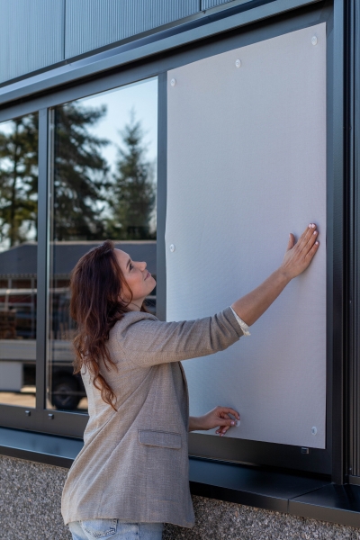 Door middel van zeilringen en zuignappen kun je het screendoek, ook wel zonnescreen of buitenscreen genoemd, heel eenvoudig monteren. Je hoeft namelijk enkel de zuignappen aan het screendoek te bevestigen, en plakken maar! Dit maakt het ook heel makkelijk om de screens te demonteren wanneer je wel van de zon wilt genieten.