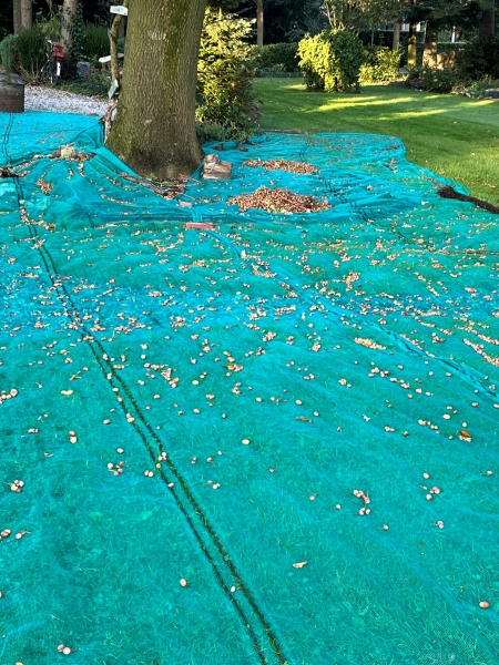 Voor het oogsten van met name boomzaden en noten worden deze netten veelvuldig gebruikt. De boomvruchten, zoals eikels en noten, worden geoogst zodra ze rijp zijn en dus naar beneden vallen. De oogstnetten worden rond die tijd onder de bomen gelegd en zodra ze op de grond vallen kunnen ze eenvoudig worden verzameld onder de bomen. Zo voorkom je dat ze te lang op de vochtige grond blijven liggen waardoor schimmelvorming eenvoudig wordt tegen gegaan. Het groene doek is licht van gewicht en gemaakt van een HDPE materiaal.