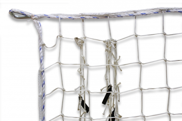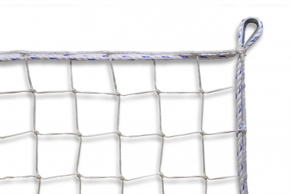 Nylon geknoopt vangnet EN 1263-1, klasse A2, type S, maas 100x100 mm., Randlijn 30 kN", draaddikte ø 4,5 mm, gegalvaniseerde hoeklussen op iedere hoek, kleur wit 7,50 x 15,00 meter |