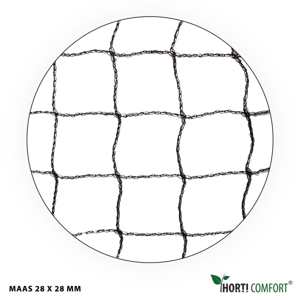 Met onze professionele Horti Comfort Tiras 28 vogelnetten haal je niet alleen degelijke maar ook duurzame netten in huis. De netten zijn gemaakt van stevig UV-gestabiliseerd polyethyleen, hebben een hoge scheurweerstand en zijn bestand tegen alle weersomstandigheden.