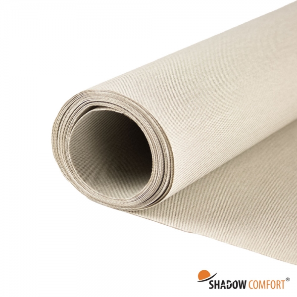 De Urban Taupe kleur uit de Shadow Comfort collectie is een warme, bruine zand tint. Deze sfeervolle kleur kan goed gecombineerd worden met veel andere tinten in verschillende interieurstijlen. Aan de onderzijde zit een speciale PU coating, waardoor je er verzekerd van kan zijn dat het doek waterdicht is. Tijdens het productieproces wordt er uiterst zorgvuldig met deze stof omgegaan. Echter door de coating zowel aan de boven- als onderzijde kunnen we niet helemaal voorkomen dat er wat vouwen zichtbaar zijn. De ervaring leert dat als je het doek met de waterdichte coating ophangt naar de grond toe dat na verloop van tijd de vouwen of oneffenheden bijna niet meer zichtbaar zijn.