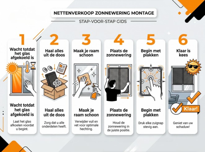Een zonwering voor de buitenkant van je raam met zuignappen monteer je kortgezegd zo: